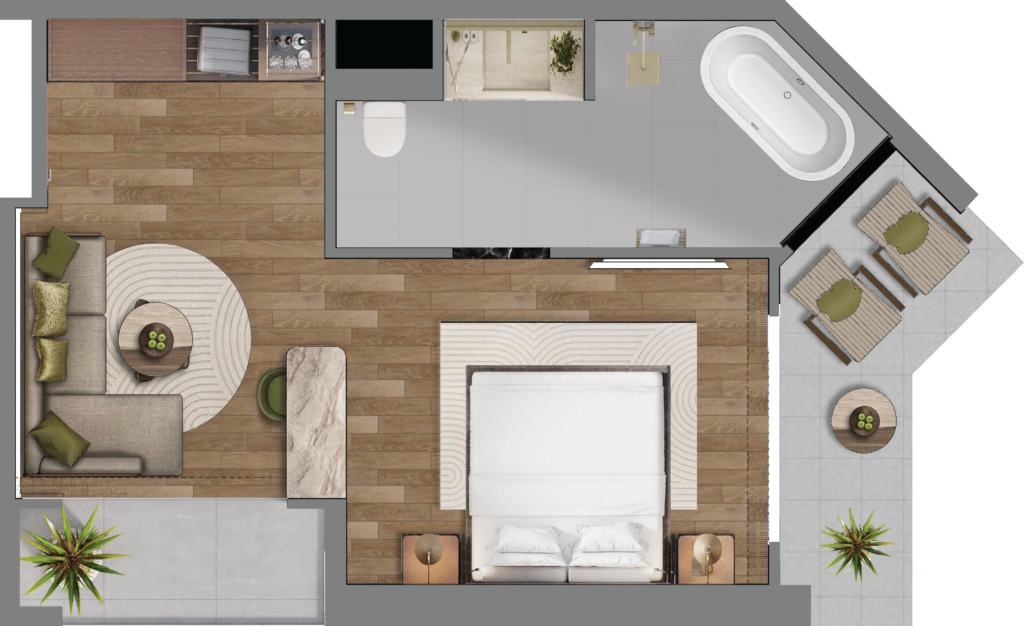 TUYỆT TÁC KHÔNG GIAN Diện tích căn: 29.2m2Từ cảm hứng cân bằng tĩnh tạiCảm nhận sự an nhiên và nguồn năng lượng tĩnh tại cân bằng trong dòng chảy thiền (zen) Nhật Bản. đạt, khí phái mang theo hơi thở nguyên sơ của tạo hóa.